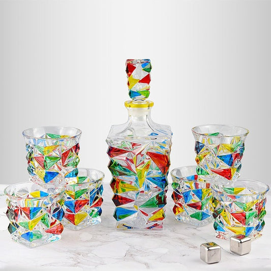 Murano Hand Painted Crystal Whiskey Decanter Set