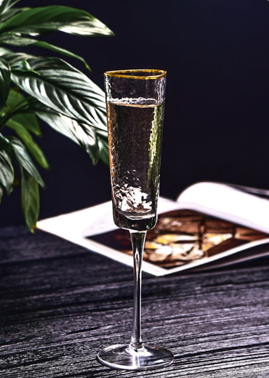Gold Rim Hammered Champagne Glass