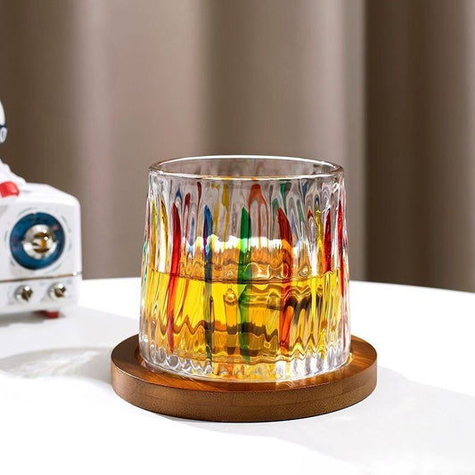 Introducing our Spinning Whiskey Glass collection, a blend of design and delight. The spinning whiskey glass is not just about serving your favorite spirits but also about adding a touch of entertainment to your drinking experience. With every gentle spin, watch as the rotating whiskey glass gracefully twirls, captivating the eyes and enhancing the aroma of your drink. For those who appreciate a blend of design and play, our spinning rocks glass offers a unique approach to traditional drinkware. Perfect for the curious and the connoisseur alike, this collection promises to make every pour a mesmerizing moment. Cheers to dynamic design in every glass!