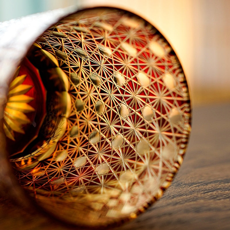 From the historic traditions of Japan emerges a glass that portray the celestial wonder. The Japanese Starry Sky Edo Kiriko Whiskey Glass captures the ethereal beauty of a starry night, each star shimmering with precision and grace.