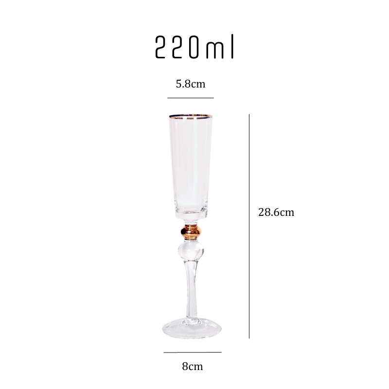 The delicate gold rim harmoniously complements the glass's clarity, making every celebration an affair of luxury and style. From the first glance to the last sip, this glass promises a journey of aesthetic delight.