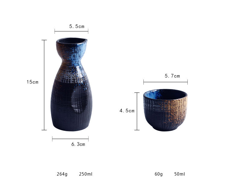 Embrace the past while toasting to the future with our modern sake set. Inspired by retro designs and fashioned with a captivating gradient of blue, black, and brown, this ceramic collection is a heartfelt nod to classic elegance with a contemporary twist