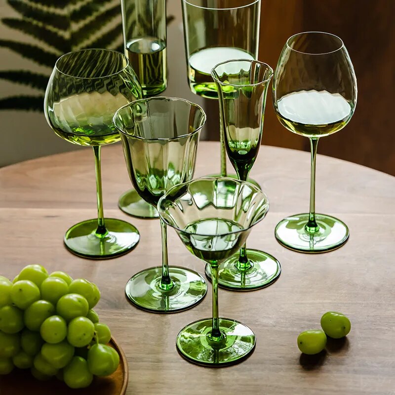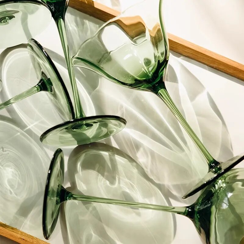 Vintage Green Flower Wine Glasses